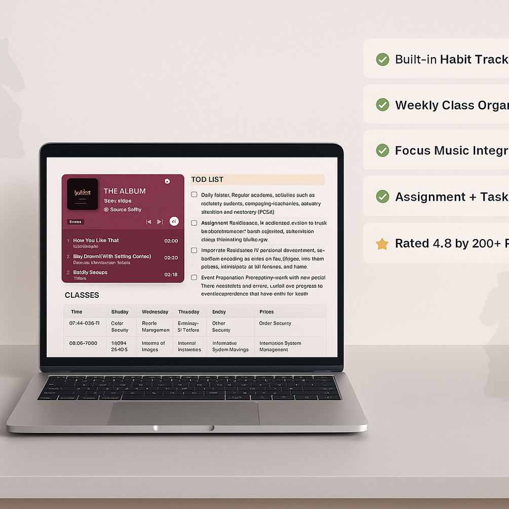 Attention students! Whether you’re in high school or college, juggling classes, homework, exams, and activities can get overwhelming. This All-in-One Student Planner Notion Template is your secret weapon to stay on top of your academic life. It's more than just a planner – it's a complete Academic Planner & Exam Tracker that will help you manage everything from daily assignments to big exams in one organized hub. Say goodbye to last-minute scrambles and hello to stress-free, productive school days.
