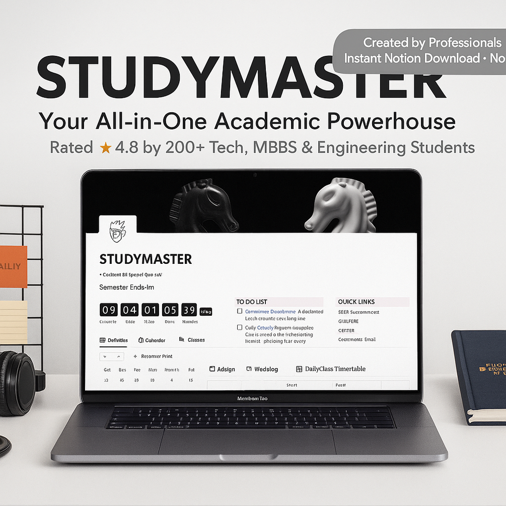 A complete student planner built in Notion. Organize your study schedule, tasks, notes, and revision — all in one clean, distraction-free dashboard. Perfect for school, college, and exam-focused students.