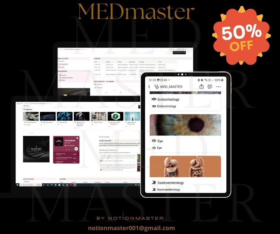 MedMaster All-in-One Medical Student Notion Planner Template | Study Planner & Organizer
